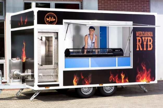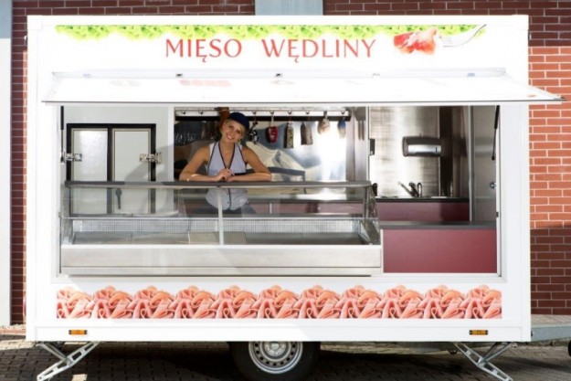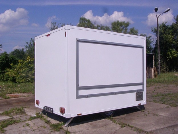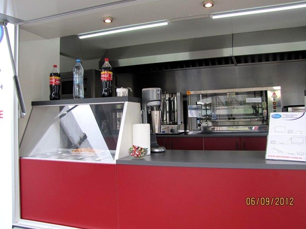 Базовое оснащение: Электропроводка, свтеодиодное освещение Газовая установка нержавеющие шкафчики сзади кузова со столешницей нержавеющие шкафчики спереди кузова со столешницей санитарный узел с гардеробным шкафом вытяжка с конденсатором масла термическая защитная стенок раковина с 3 отделениями с кранами система вентиляции холодильников закаленное стекло Дополнительное оснащение: крупногабаритная реклама система независимого питания